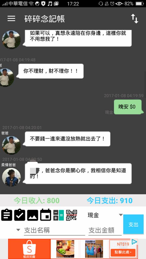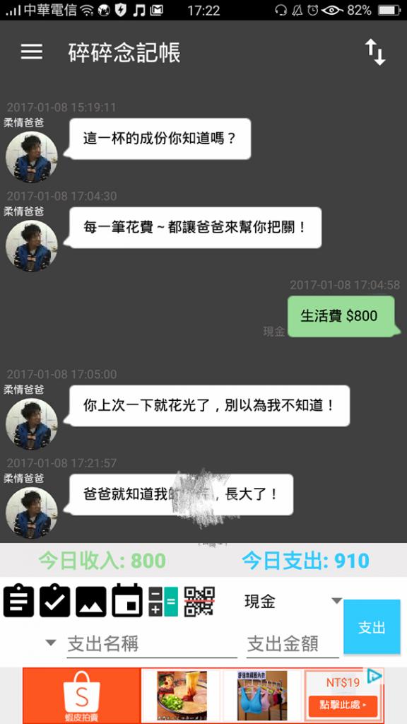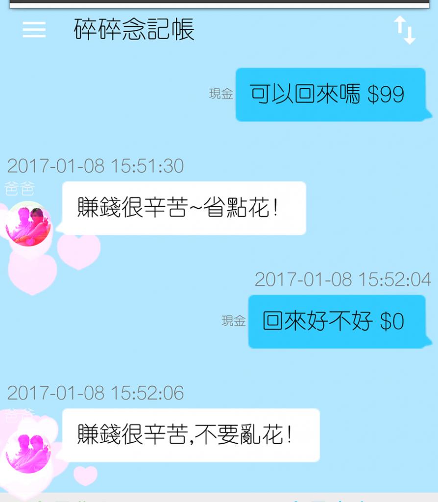 另外還有一款記帳APP「碎碎唸記帳 NaggingMoney」能一邊記帳,一邊跟模擬家長聊天,許多網友都被這些暖心的回覆打動了。