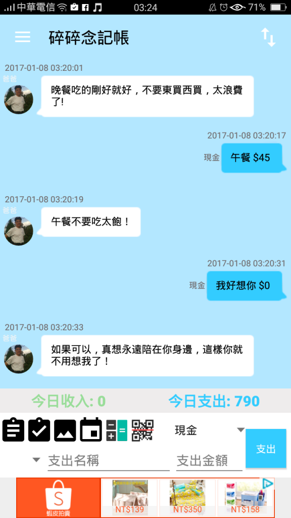「我也是用這個記帳 真的很溫暖….」