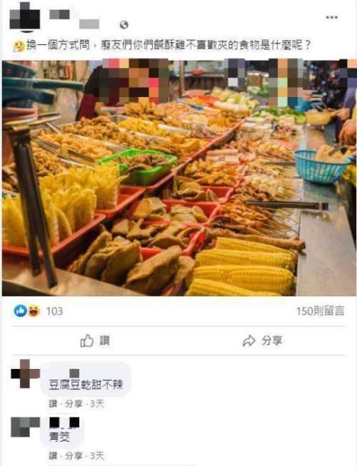 許多人在討論鹹酥雞時,都是以大家喜歡吃什麼來詢問,然而該名男網友於臉書社團表示要換個方式,因此詢問大家鹹酥雞中最不喜歡的食物,沒想到貼文曝光後,迅速引發大家熱烈討論。