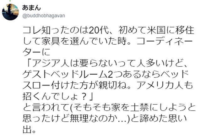 「2x歲第一次去美國住的時候要挑選家具,設計師建議我在客房床上擺床尾巾才方便招待美國人,我就想我的家裡已經規定要拖鞋了啊」