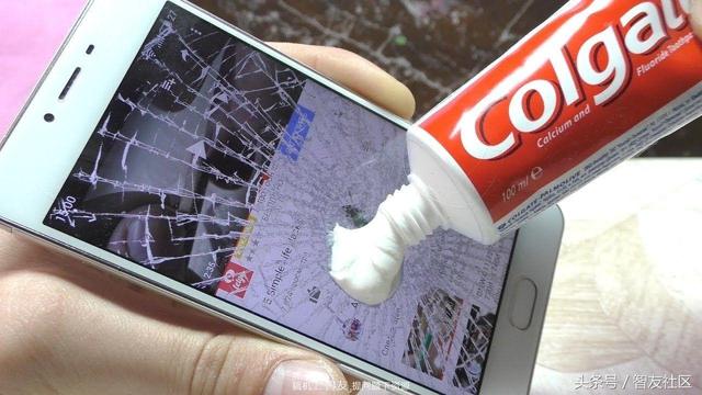 把牙膏適量擠在濕抹布上後用力在手機屏幕刮傷處前後左右來回用力塗勻…..