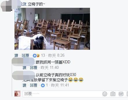 還有網友PO圖表示,是放椅子用的! 「課後將座椅倒立在桌面時的對點」、「當然是倒立椅子用的」、「放椅子,打掃的時候要搬上去固定在凹槽」。