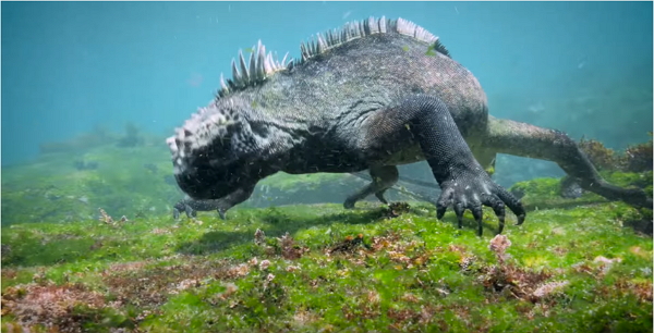 這隻巨獸看起來像爬蟲類屬的蜥蜴,卻又能在海底優游,且有著兇猛的外表,看起來頗嚇人!而當海底攝影師跟著牠繼續拍攝,卻發現這隻海底巨獸一點也不兇猛,牠潛到深海的海床上,竟然只是為了吃海藻!
