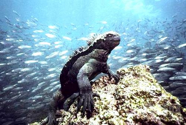 它們和魚類一樣,能在海裡自由自在地優游。它們喝海水,吃海藻及其他水生植物。加拉帕哥群島上的海鬣蜥由於屬於史前爬行類動物而名聞遐邇,它們幾乎沒有天敵,數百萬年來一直過著悠閑的生活,性情極為溫順。