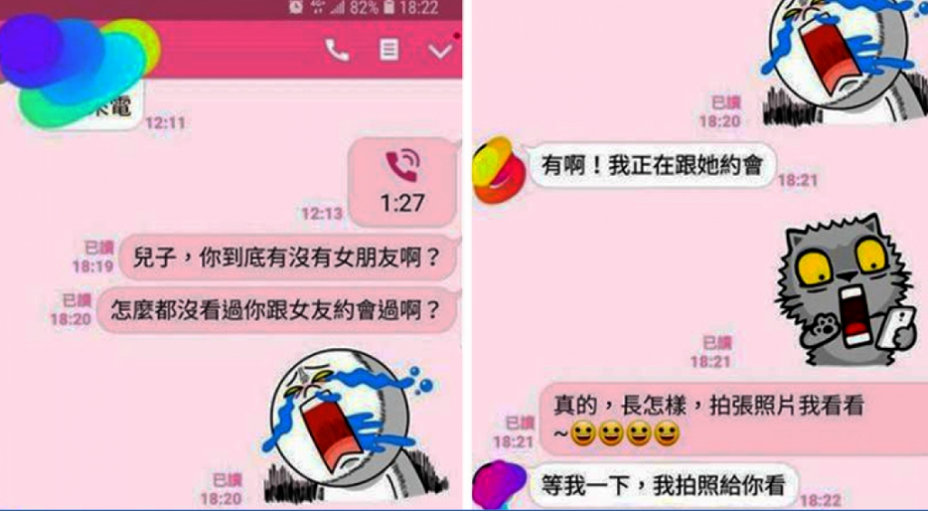 媽媽問兒子有沒有女朋友,為什麼沒有看過他和女友約會。