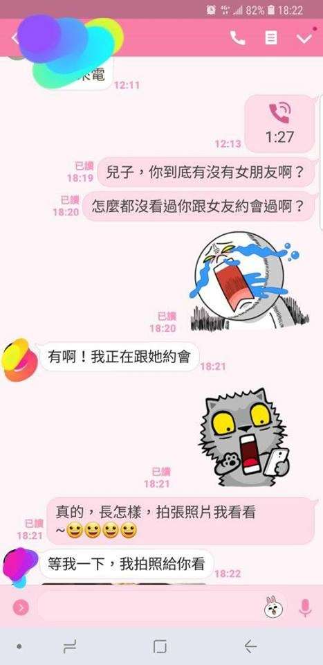 兒子一本正經回答:「有啊,我正在跟她約會。」