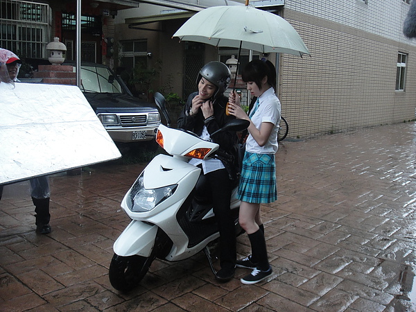 突然從我後面騎出一台機車,直接停在阿伯和那個女生中間,是一對情侶